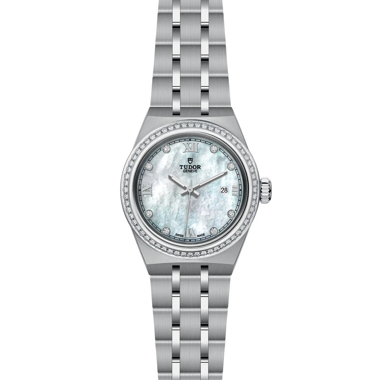 Cassa in acciaio, 28 mm, Quadrante con diamanti.
