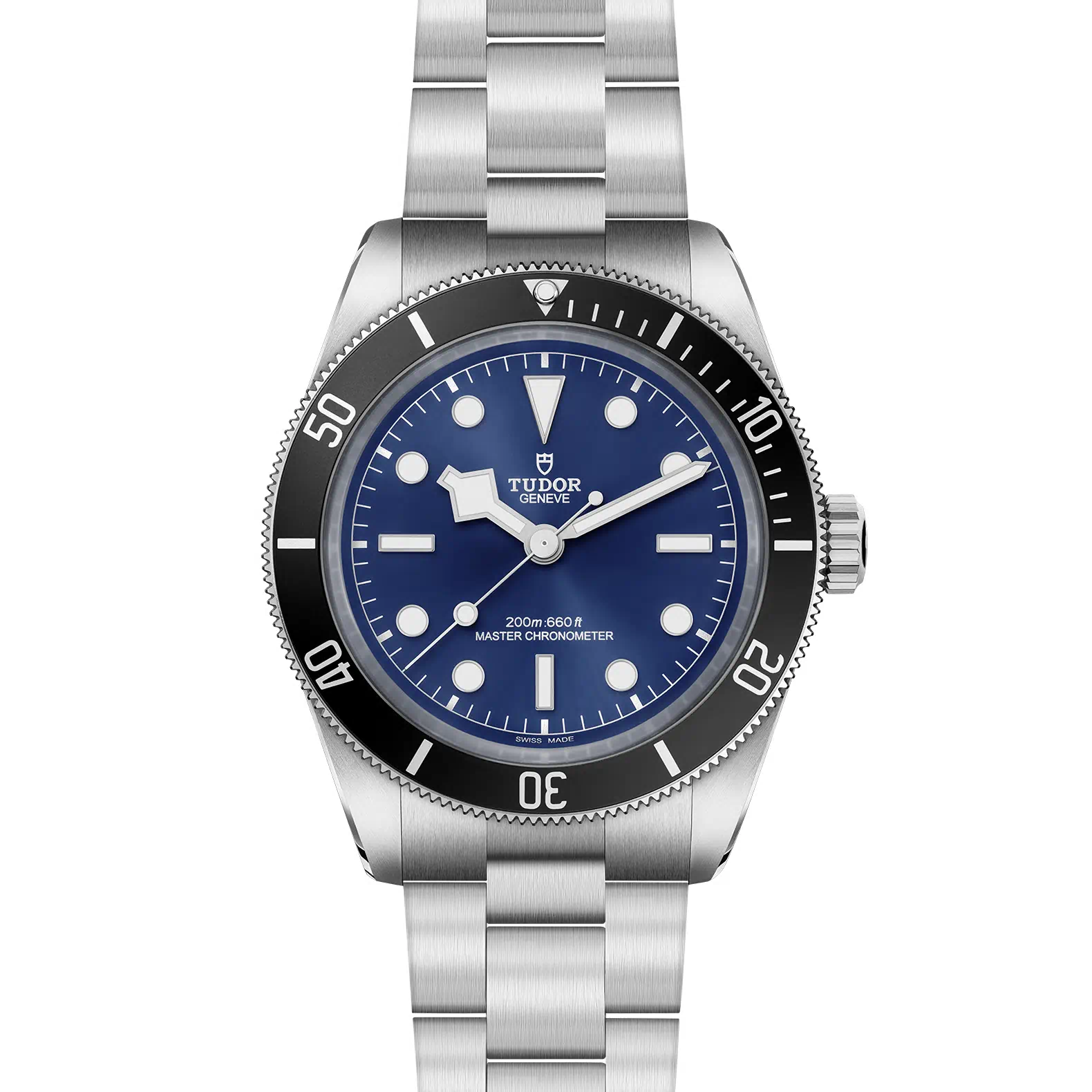 Bracciale a tre maglie dai fianchi lisci in acciaio, finitura lucida e satinata, chiusura TUDOR “T‑fit” con sistema di regolazione rapida.