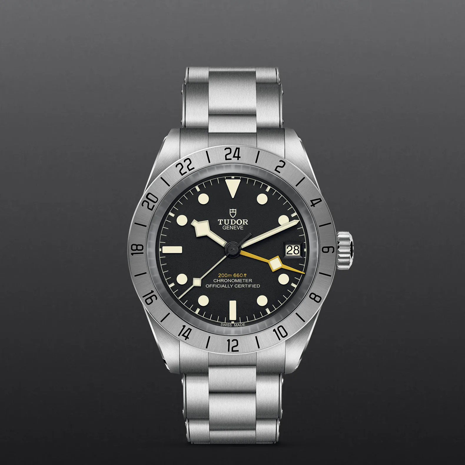 Richiedi informazioniIl Black Bay Pro è dotato di doppio fuso orario, una complicazione tecnica che permette di visualizzare l’ora locale senza perdere di vista l’ora di un altro fuso orario. Compatto, robusto e sportivo, questo modello presenta numerosi dettagli estetici unici e celebra lo spirito degli orologi tecnici che TUDOR ha prodotto per i professionisti nel corso della sua storia. Riconoscibile grazie alla lunetta fissa satinata graduata 24 ore e alla lancetta “Snowflake” 24 ore di colore giallo, il Black Bay Pro è animato dal Calibro di Manifattura TUDOR MT5652 con funzione GMT integrata. Quest’anno viene introdotto un quadrante opalino all’interno della gamma.