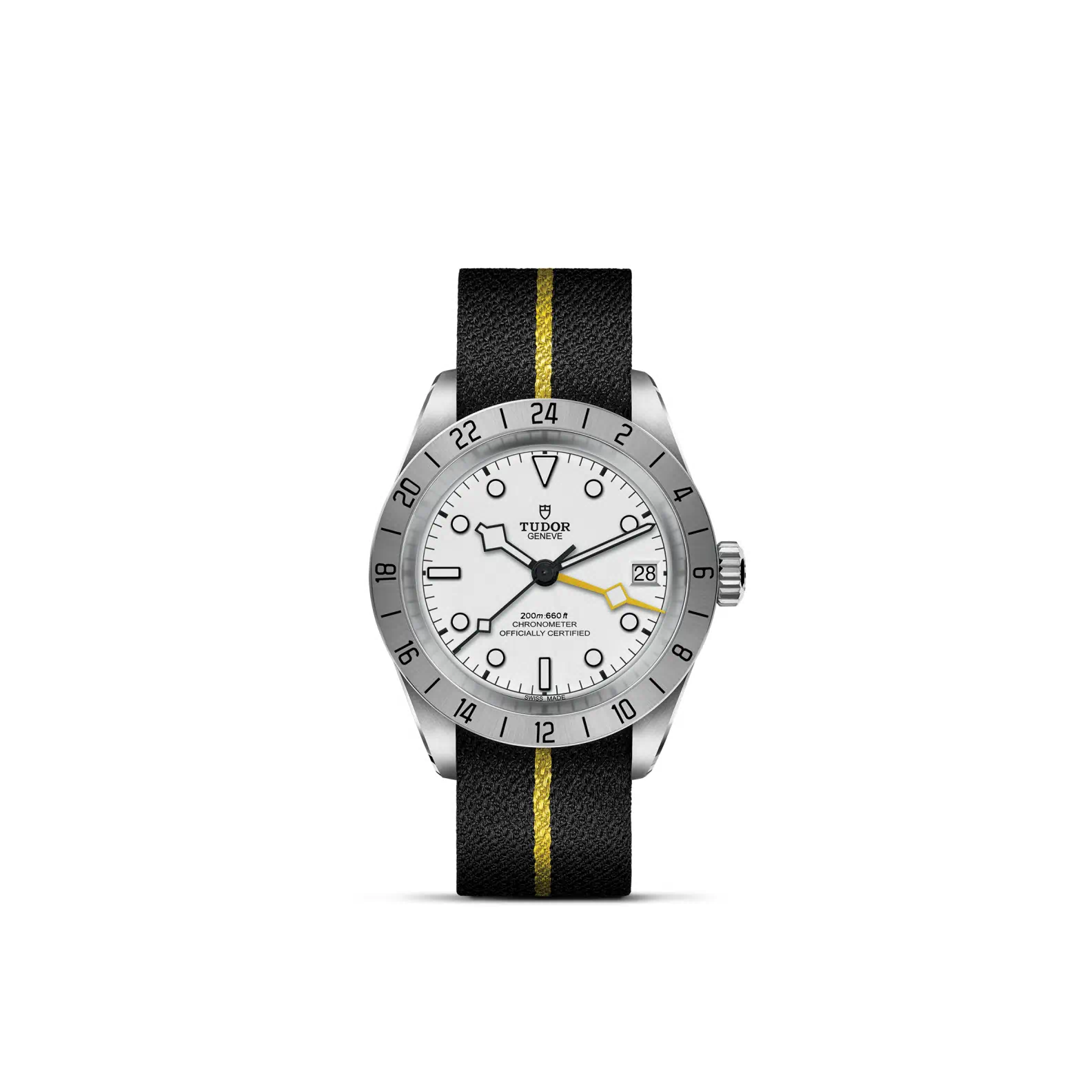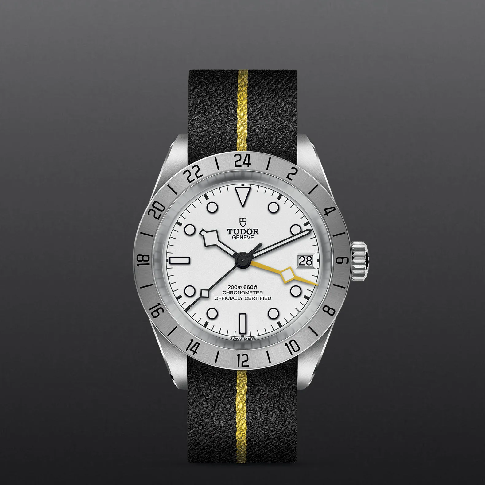 Richiedi informazioniIl Black Bay Pro è dotato di doppio fuso orario, una complicazione tecnica che permette di visualizzare l’ora locale senza perdere di vista l’ora di un altro fuso orario. Compatto, robusto e sportivo, questo modello presenta numerosi dettagli estetici unici e celebra lo spirito degli orologi tecnici che TUDOR ha prodotto per i professionisti nel corso della sua storia. Riconoscibile grazie alla lunetta fissa satinata graduata 24 ore e alla lancetta “Snowflake” 24 ore di colore giallo, il Black Bay Pro è animato dal Calibro di Manifattura TUDOR MT5652 con funzione GMT integrata. Quest’anno viene introdotto un quadrante opalino all’interno della gamma.