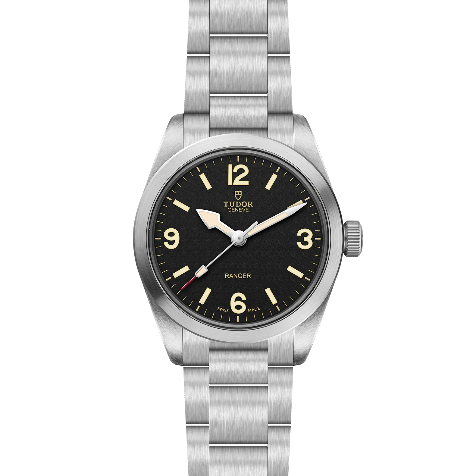 Il Ranger è una moderna interpretazione dell’orologio da spedizione TUDOR che rende omaggio allo spirito d’avventura. Si presenta come un robusto orologio-strumento dotato del Calibro di Manifattura MT5400 o MT5402, di una cassa da 36 mm o 39 mm, e disponibile con bracciale con chiusura “T-fit” oppure con cinturino in tessuto. Il modello Ranger è in continuità con gli standard estetici consolidatisi nel corso degli anni per questa famiglia di orologi – da cui riprende in particolare il quadrante nero o “Dune white” con numeri arabi a ore 3, 6, 9 e 12 –, ma incorpora al contempo elementi tecnici all’avanguardia.